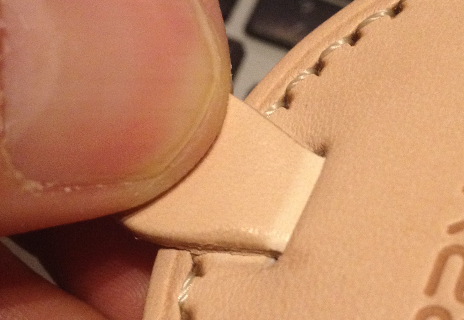 えっと、日焼けさせていた小銭入れですけどね、陽が暮れるからと室内へと入れてみれば、上の写真のように、まさに日焼けって感じで、ほんのりと赤みを増していました。陽にあたりにくかったサイド面と比較すると色が違うことが分かりますかね(写真上)。
